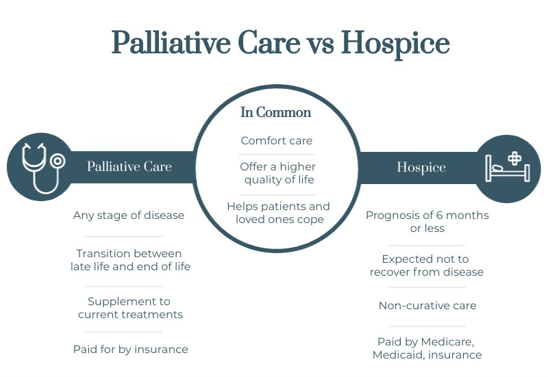 In contrast, hospice care is a specific type of palliative care that is intended for patients who are nearing the end of life, typically with a prognosis of six months or less to live. The primary focus of hospice is on comfort and dignity during the final stages of life, rather than on curative treatment. Hospice care is generally initiated when curative measures are no longer effective or desired, allowing patients to shift their focus from aggressive treatment to quality of life enhancement, surrounded by their loved ones. Like palliative care, hospice provides a multidisciplinary team approach that includes doctors, nurses, social workers, and spiritual advisors, all working collaboratively to address the physical, emotional, and spiritual needs of patients and their families.